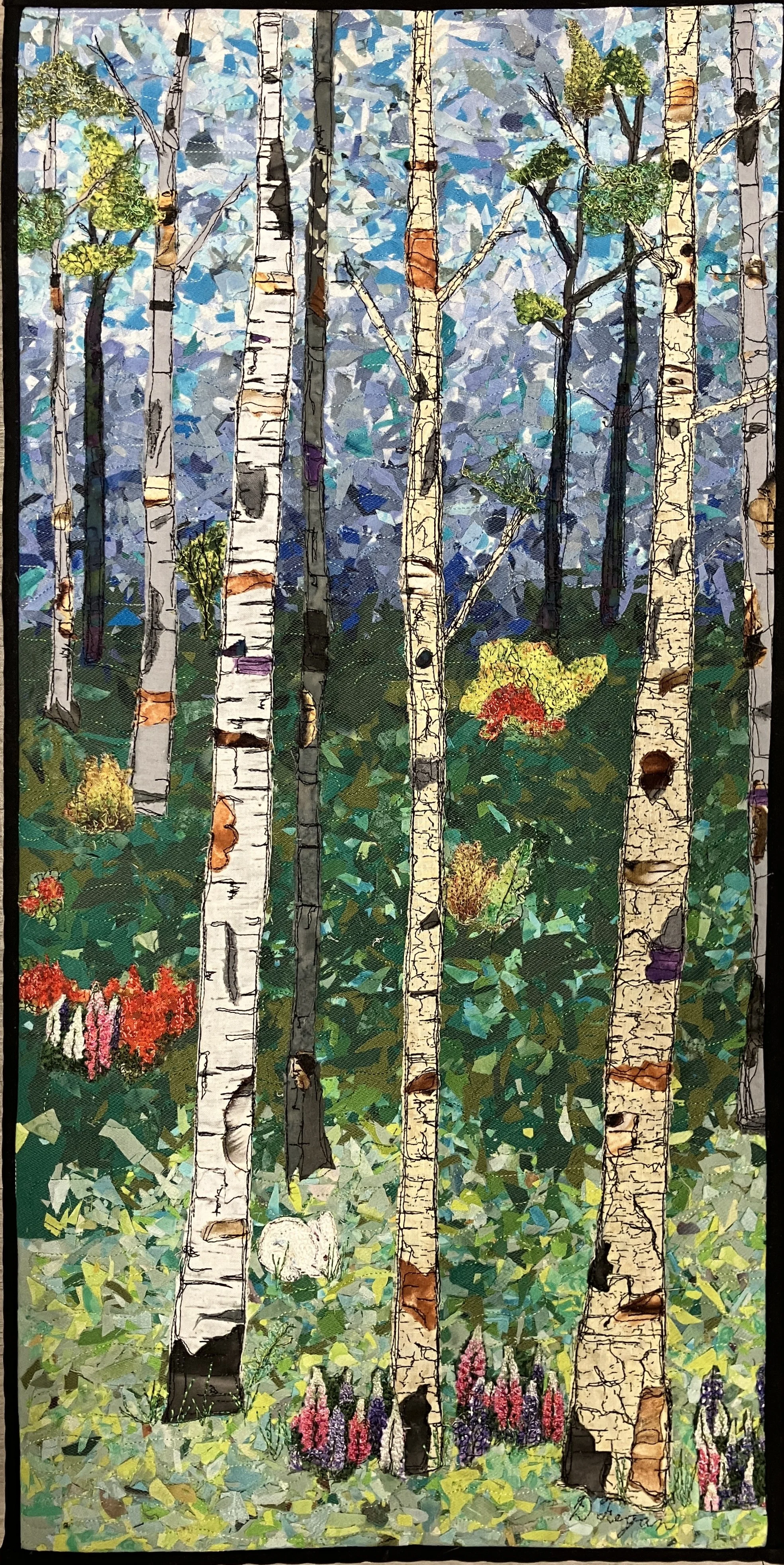 After watching one of Karen’s video’s on organizing, I found four shelves to reorganize so fabric and containers fit better. I also wrapped 10 pieces of fabric to on small bolts and put them away. Only one scenic birch quilt got mounted today because I spent most of the day on tax stuff, from 8:00- 4:00. Before turning I did a bit more work cutting out my granddaughter’s dollhouse quilt.