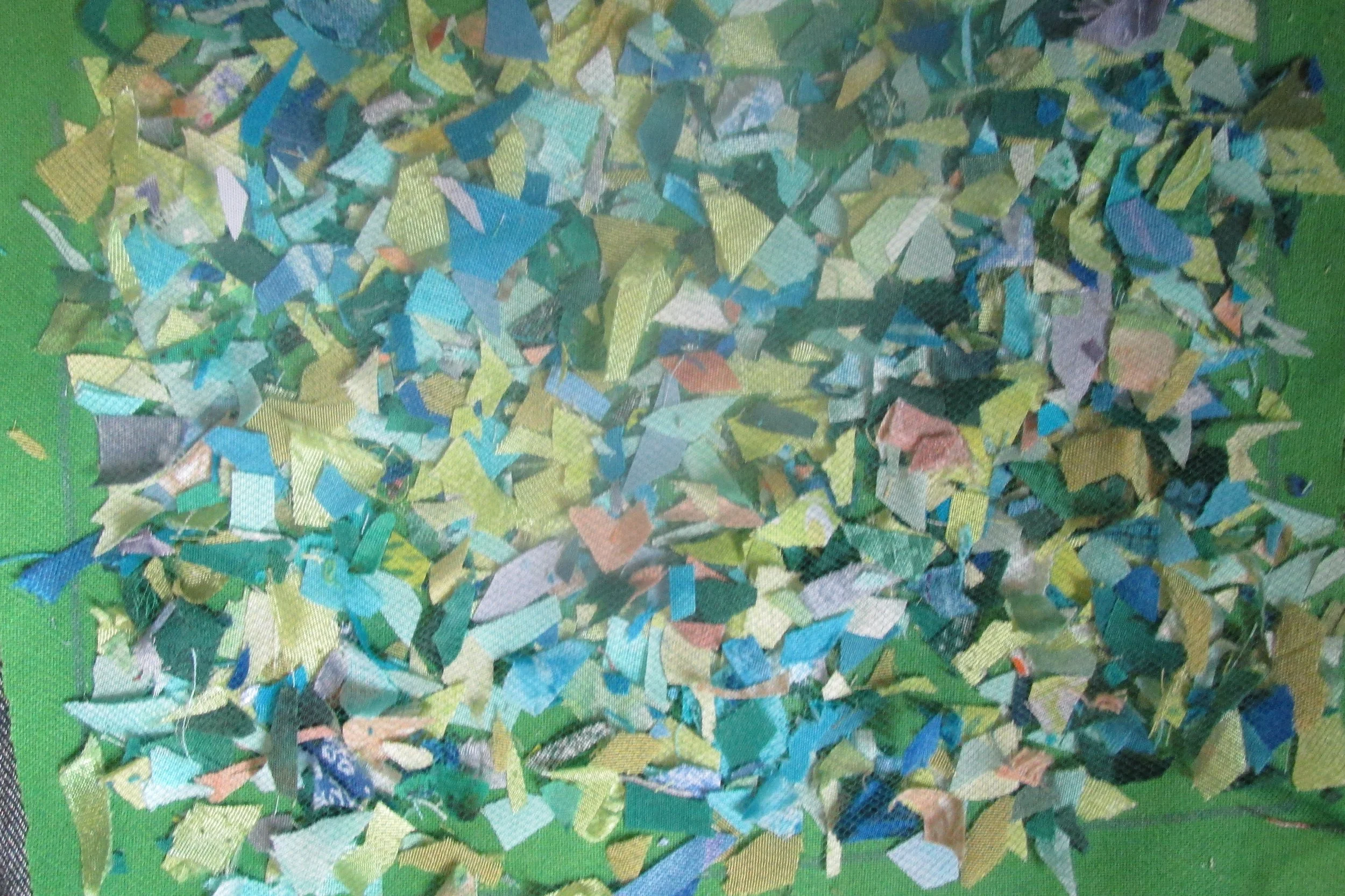 Birds are hand cut appliqué cotton fabrics layered over the confetti background.